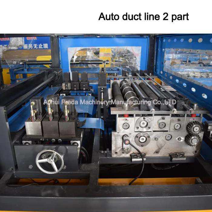 Super auto duct line 5 with duplex TDF flange station and hydraulic folding station all in 1 machine.